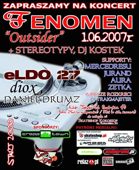 Powraca w wielim stylu i w doborowym towarzystwie reprezentantów polskiego hip-hopu, ale nie tylko. Koncert Fenomena odbędzie 1 czerwca w krakowskim klubie Studio i będzie promował ostatni album zespołu. Grupie towarzyszyć będą: Stereotypy(zespół grający na żywymch instrumentach), Eldo, JURAND, AURA, ZETKA